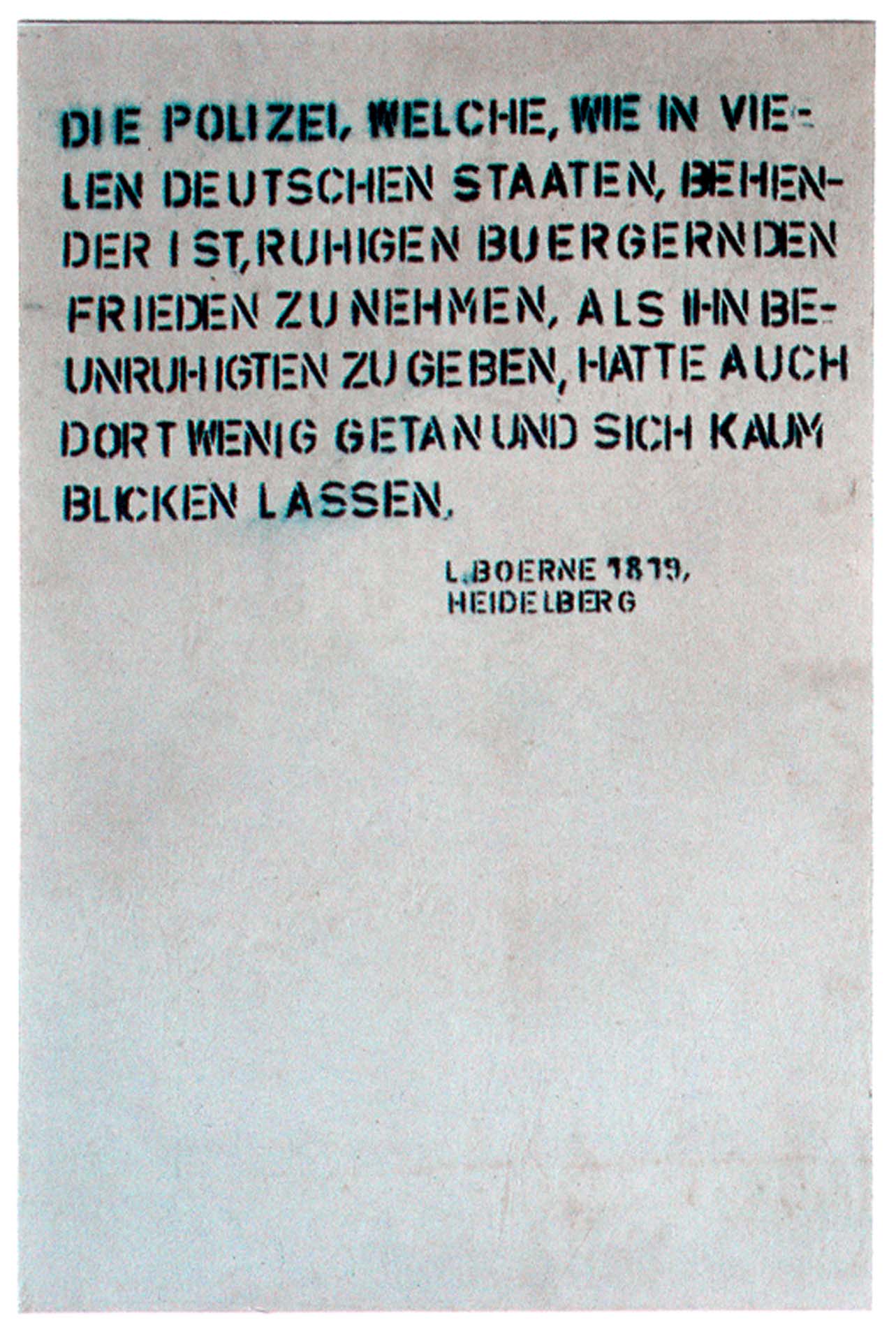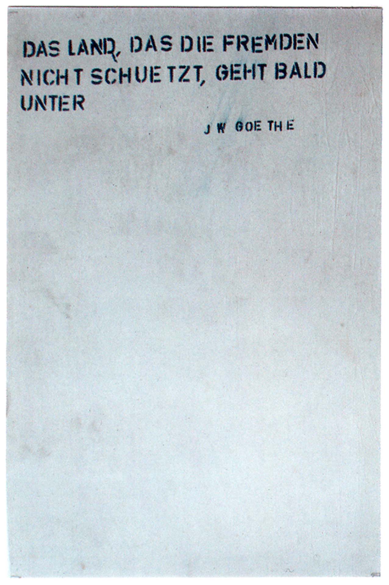 Fremd ist der Fremde nur in der Fremde (Detail), Cyanotype, 6 Banners with Images and 6 Panels with Text, 1993