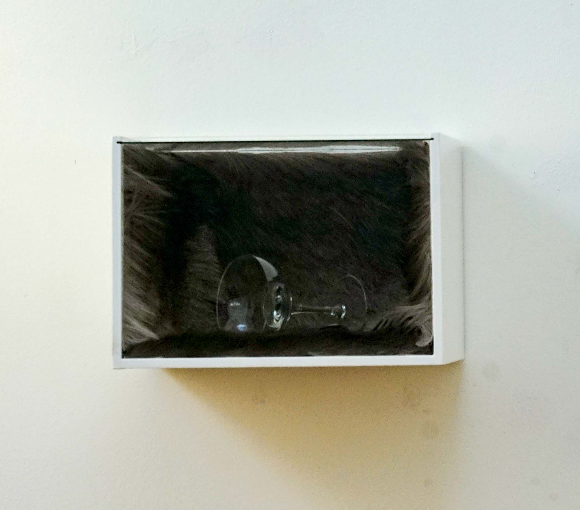 Wooden Box, Fur, Champagne Glass, Cutlery, Glass, Text, 28 x 31 x 31 cm