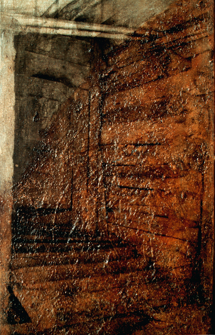 Jewlane (Judengasse) from the series Old Passau – Forgotten Views (Alt Passau – Vergessene Ansichten), Silver Gelatine Print on Acrylic and Mixed Media, 30 x 25 cm, 1993