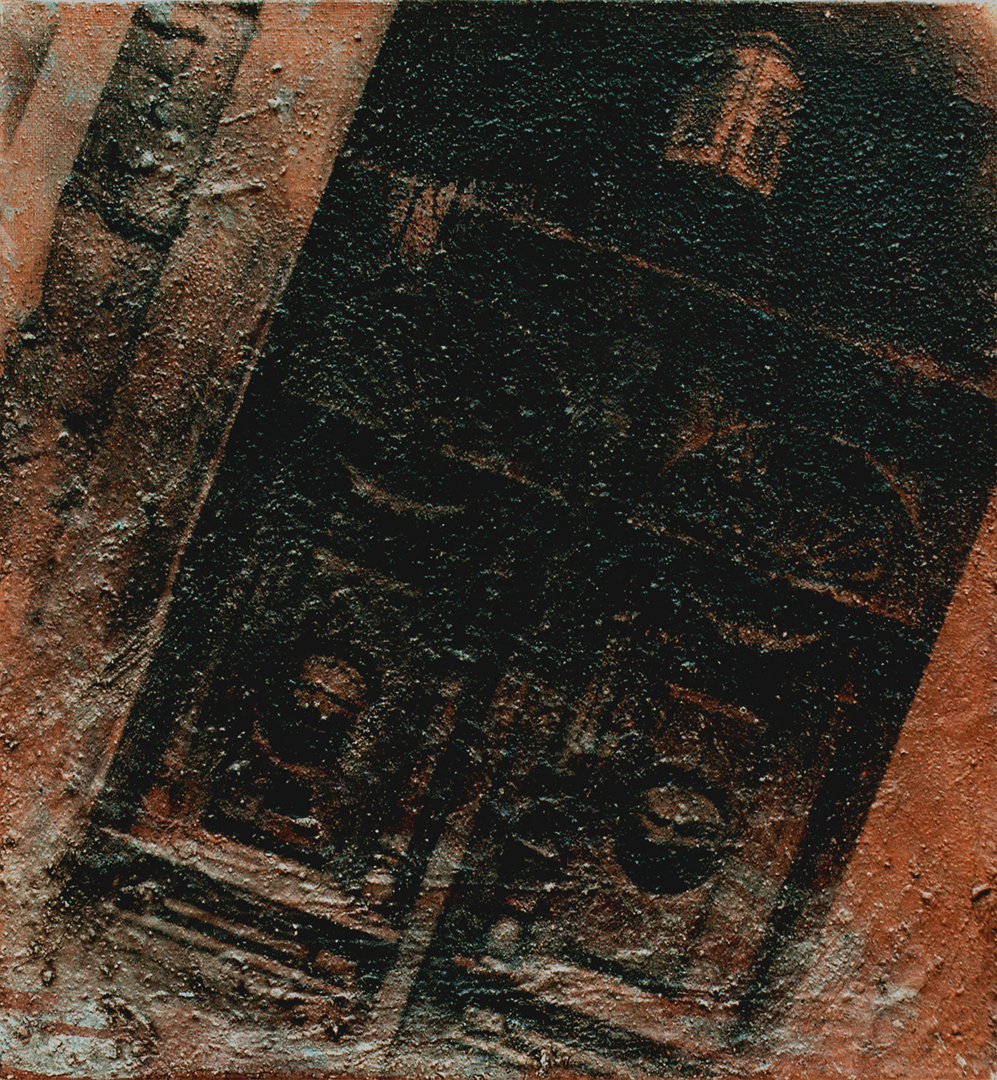 Türe Krakau (Door Krakow), 1993, Silver Gelatine (applied by hand) on Acrylic Painting on Canvas, 70 x 70 cm