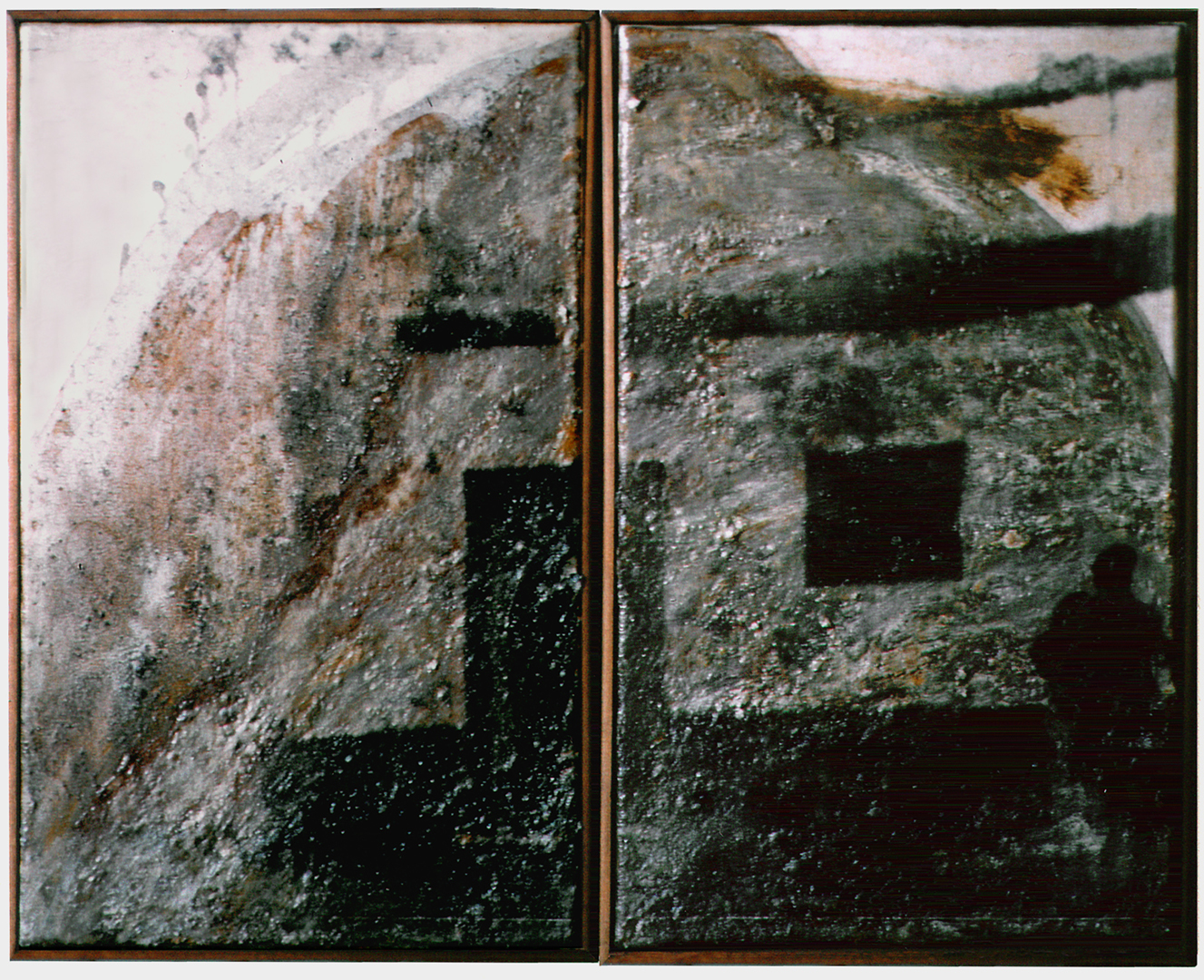 Vespasiano, 1992, Silver Gelatine (applied by hand) on Acrylic Painting on Canvas, Diptych 30 x 65 cm